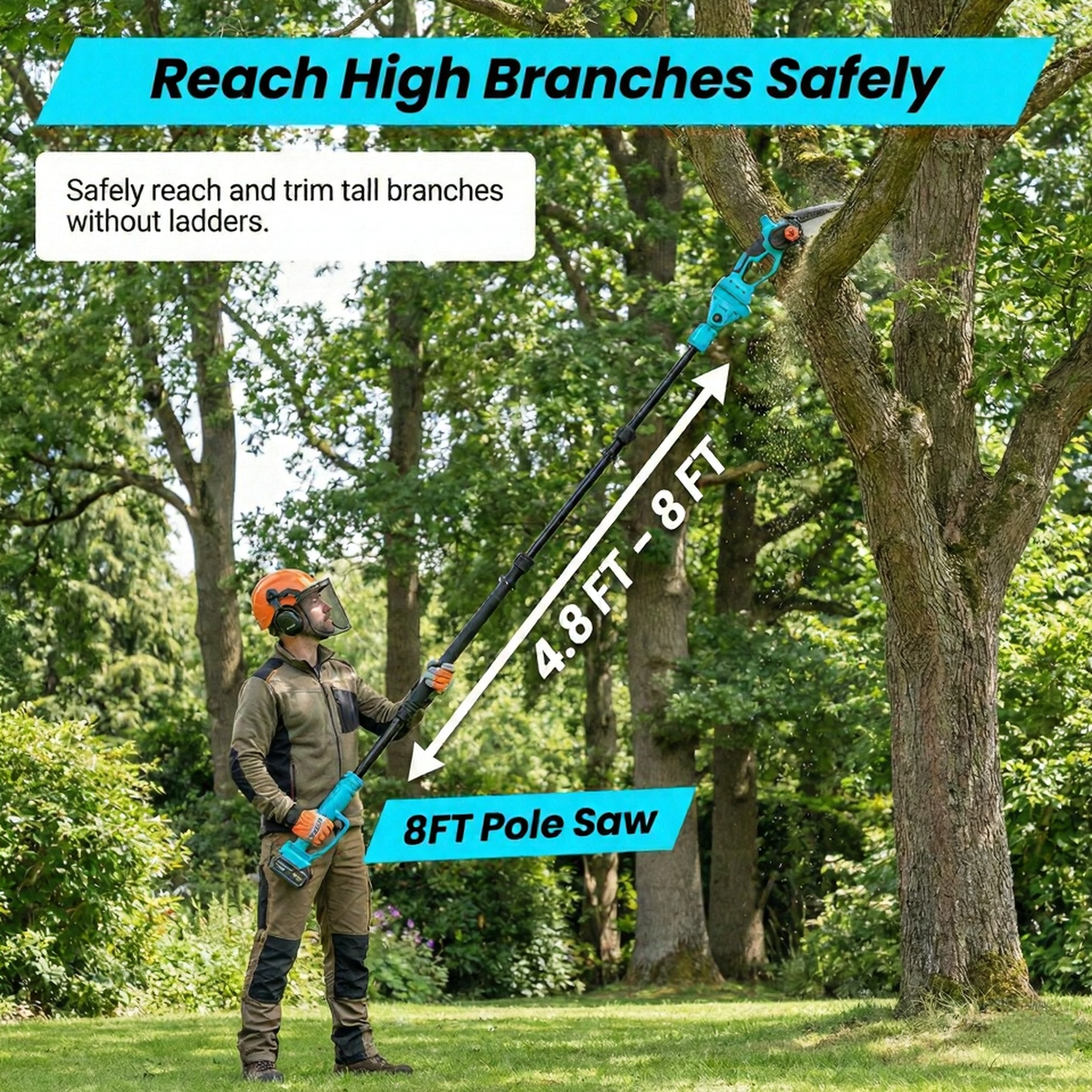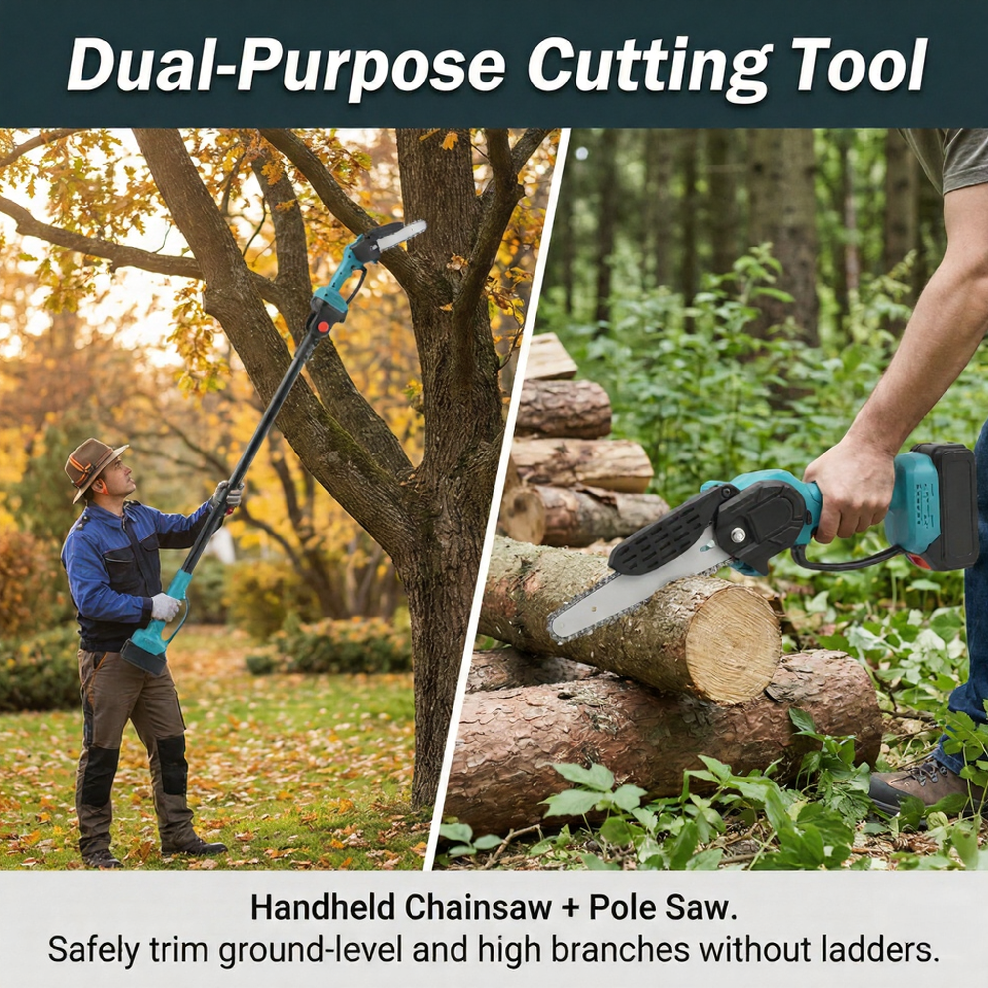 All-in-One Cordless 8″ Chainsaw + Pole Saw — Reach, Cut & Trim with Ease