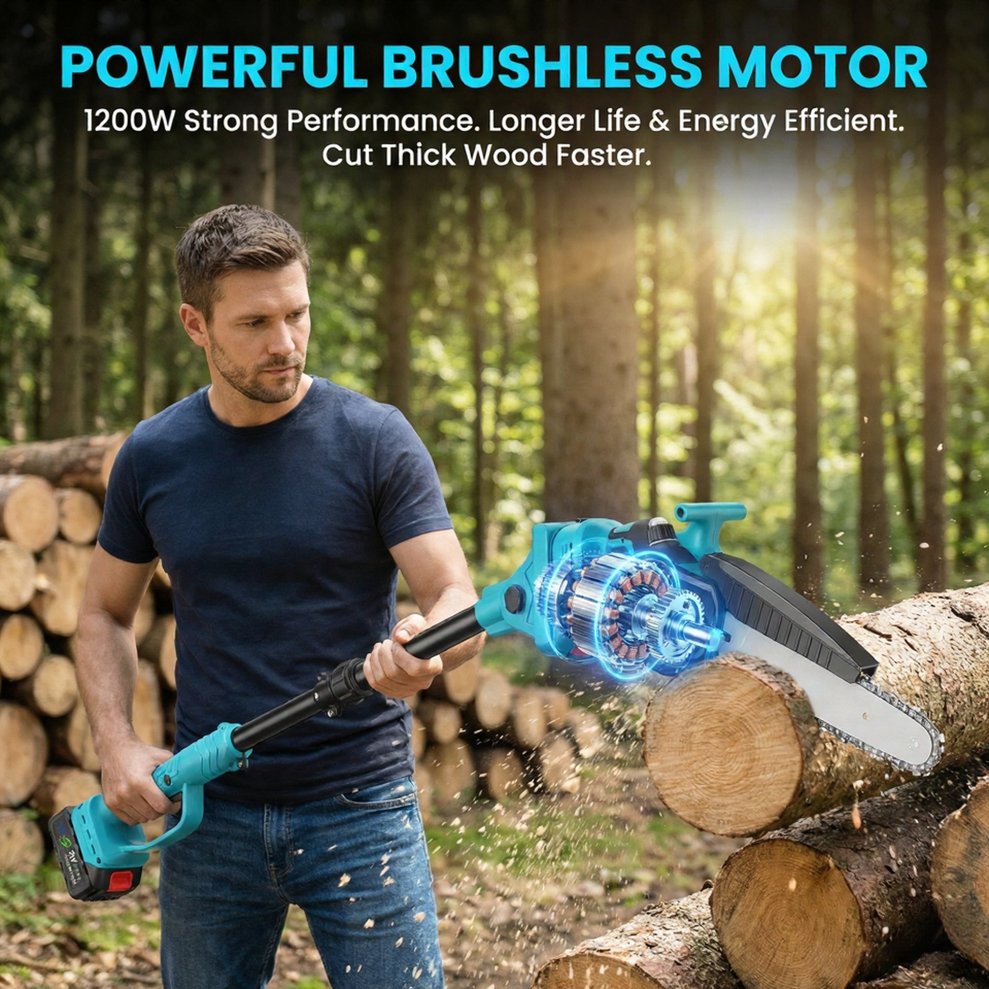 Equipped with a 1200 W brushless motor, this saw delivers strong cutting performance, longer motor life, and greater energy efficiency versus brushed motors — so you can cut through thick wood faster and with less noise.